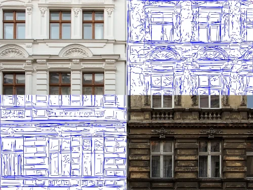 Dieses Preset ist für Häuser, Fassaden, Schaufensterfronten und andere Motive gedacht, bei denen klare Kanten und eine gut lesbare Struktur wichtiger sind als malerische Texturen. Es reduziert visuelle Unruhe, schärft Fenster, Dachlinien und Perspektive und verwandelt ein Foto in eine saubere Architekturillustration mit technischem Charakter. Eine starke Wahl für Immobilienmarketing, Präsentationsboards, Beschilderung und Portfolio-Visuals.